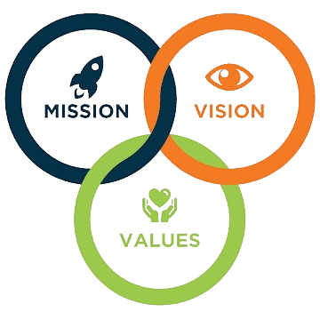 Where your vision is for a future, often utopian state, a mission is what you are doing now and will form part of the journey towards this vision.